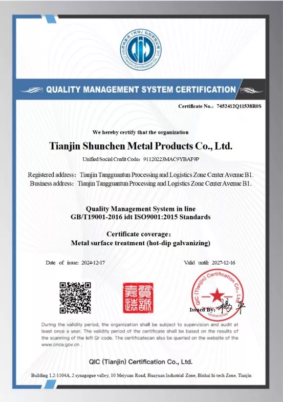 Kierownictwo wyższego szczebla Shunchen ma ponad 20-letnie doświadczenie i technologię w produkcji cynkowania ogniowego.