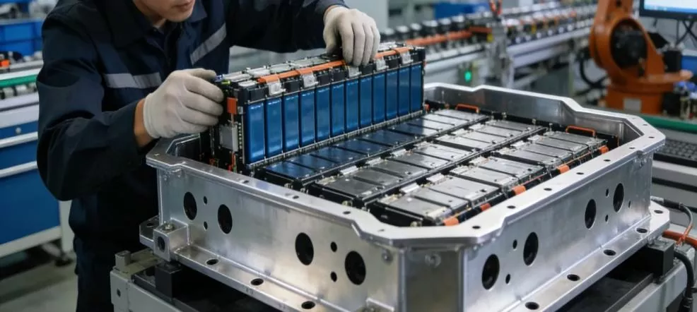 Sektor transportu: zbliżenie zespołu ramy zestawu akumulatorów pojazdu nowej energii