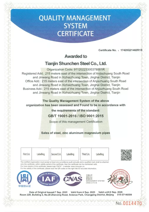 Nasze ocynkowane rury okrągłe są dostępne w szerokiej gamie specyfikacji i 236 różnych rozmiarach, aby sprostać różnorodnym potrzebom. Nasze produkty posiadają certyfikat ISO9001, posiadają certyfikaty systemu ISO 9000, 3A oraz certyfikat UE CE. Dostarczamy także raporty materiałowe, certyfikaty badań grubości powłoki cynkowej oraz raporty z niezależnych kontroli jakości. Wybór ocynkowanych rur okrągłych Shunchun zapewnia nie tylko kompleksowe usługi zakupowe, ale także całodobową pomoc posprzedażną i śledzenie w czasie rzeczywistym w 18 kluczowych punktach, dzięki czemu zakupy są bardziej bezproblemowe i niezawodne.