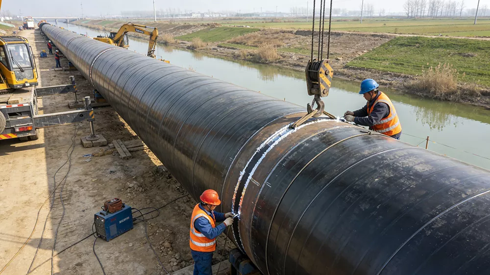 Obowiązujące scenariusze: wielkoskalowe projekty przekierowania wody, projekty przesyłu wody, projekty ochrony przeciwpowodziowej i odwadniania, główne rurociągi do nawadniania pól uprawnych, projekty zaopatrzenia w wodę pitną, projekty zaopatrzenia w wodę wysp itp. Podstawowymi wymaganiami są wysoka przepustowość, odporność na korozję i odporność na ciśnienie wody. Można je dostosować do złożonych środowisk, takich jak koryta rzek, tereny zasolone itp. Są w stanie skutecznie przeciwstawić się erozji wodnej i osiadaniu geologicznemu, zapewniając stabilną transmisję zasobów wodnych i gwarantując bezpieczną realizację projektów związanych z ochroną wody. Odgrywają ważną rolę wspierającą w kluczowych krajowych projektach ochrony wody. Opis sceny: Na placu budowy projektu przekierowania wody w Jinghai do układania głównego rurociągu wykorzystuje się rury spiralne o dużej średnicy. Rury przebiegają przez rzeki lub pola uprawne, a pracownicy wykonują prace uszczelniające złącza. Na terenie projektu zaopatrzenia w wodę wyspy zastosowano rury spiralne o dużej średnicy wykonane w technologii antykorozyjnej 3PE, aby zapobiec erozji wody morskiej i zapewnić wzajemne połączenie zasobów wodnych między wyspą a lądem stałym.