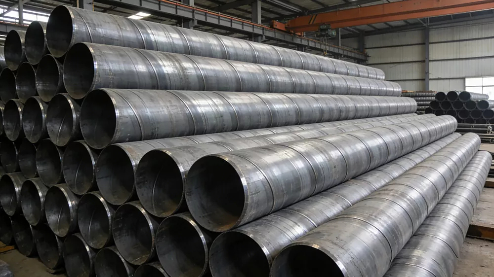Rura spiralna o dużej średnicy (znana również jako rura spawana spiralnie o dużej średnicy) to rodzaj rury stalowej ze spiralnym szwem, wykonanej z wysokiej jakości blach stalowych walcowanych na gorąco jako surowca rdzenia. Jest on formowany poprzez wytłaczanie na zimno w temperaturze pokojowej, a następnie spawany za pomocą automatycznego procesu spawania dwustronnego, dwustronnego łukiem krytym. Standardową definicją rdzenia jest średnica zewnętrzna ≥ 711 mm (co odpowiada średnicy nominalnej DN700 i większej). Można go dostosować do średnicy zewnętrznej do 3620 mm lub nawet większej, zgodnie z wymaganiami inżynieryjnymi. Jest to kompozytowy rodzaj produktu stalowego, który łączy w sobie właściwości nośne i transportowe. Jego podstawową funkcją jest zapewnienie transportu na duże odległości i dużej stabilności dużych ilości płynów (takich jak woda, ropa naftowa, gaz, ścieki itp.), a także może służyć jako element wsparcia konstrukcyjnego dla projektów na dużą skalę, dostosowując się do złożonych warunków pracy i trudnych środowisk. Dzięki unikalnej konstrukcji spiralnej wypełnia lukę branżową w zakresie wydajnej produkcji i stabilnego stosowania materiałów rurowych o dużej średnicy i jest szeroko stosowany w różnych scenariuszach infrastrukturalnych i przemysłowych.