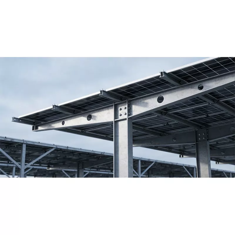 Skrupulatnie wykonana konstrukcja zadaszenia słonecznego firmy Shunchen Industrial to innowacyjny system kompozytowy integrujący wytwarzanie energii fotowoltaicznej oraz ochronę pojazdu przed słońcem i deszczem, obejmujący konstrukcje stalowe i ze stopów aluminium. Wykorzystuje solidną ramę zbudowaną z profili stalowych i rur kwadratowych, sprytnie integrując wsporniki modułów fotowoltaicznych i wysokowydajne panele fotowoltaiczne na górze, podczas gdy podstawa jest wyposażona w stabilne kolumny, fundamenty i precyzyjne ograniczenia parkingowe. Zapewnia to podwójną, wysoką wydajność: „ochronę przed słońcem i deszczem + wytwarzanie energii podłączonej do sieci”, dzięki czemu ma szerokie zastosowanie w różnych scenariuszach parkowania, takich jak parki przemysłowe, fabryki, kompleksy handlowe i obszary mieszkalne.